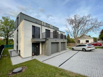 Originální kombinace zdiva a dřevostavby pro maximální úsporu energií, jejíž realizace zabrala dva roky. Výsledkem je dům pro dvě rodiny, při jehož výstavbě bylo využito několik odlišných stavebních technologií – zděné keramické tvárnice, monolitické konstrukce, dřevostavba, protihlukové stěny, dvouplášťová střecha. Zajímavostí je použití akustického zdiva, které zaručuje, že život v dvojdomku zůstává klidný a tichý. Objekt je vzdušný, disponuje terasami po obou stranách a velkými okny, která zaručují krásnou prostupnost mezi interiéry a zahradou.